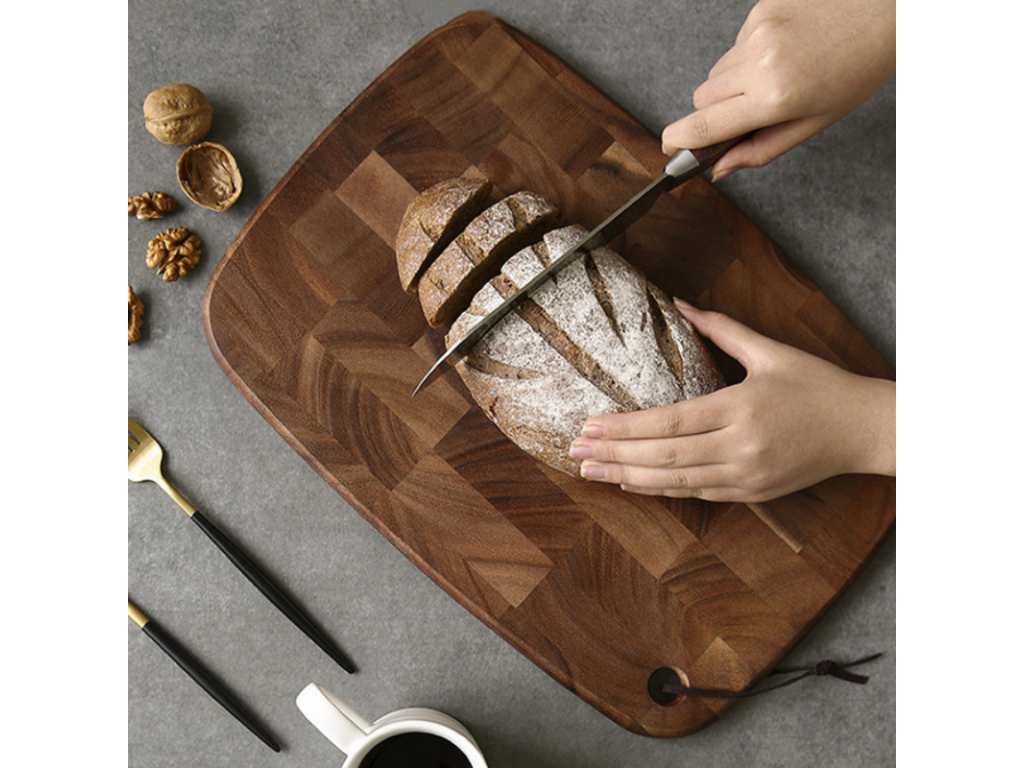 Kuchyňské prkénko HezHen z přírodního akáciového dřeva na přípravu a servírování pokrmů.
