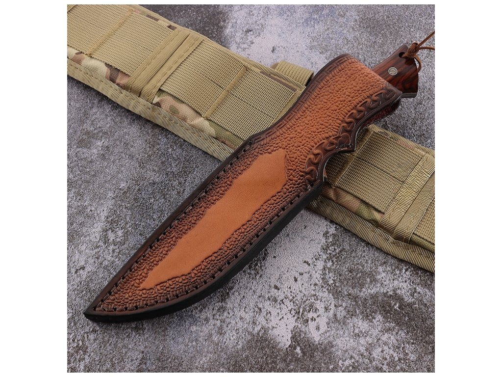Nůž se výborně drží, její uložení do pouzdra na opasek je velice propracované a praktické. Z pouzdra nevypadne, ale velmi lehce se z něj vyndává. Rukojeť z palisandru navíc zaručuje její stálost a neopotřebovatelnost.