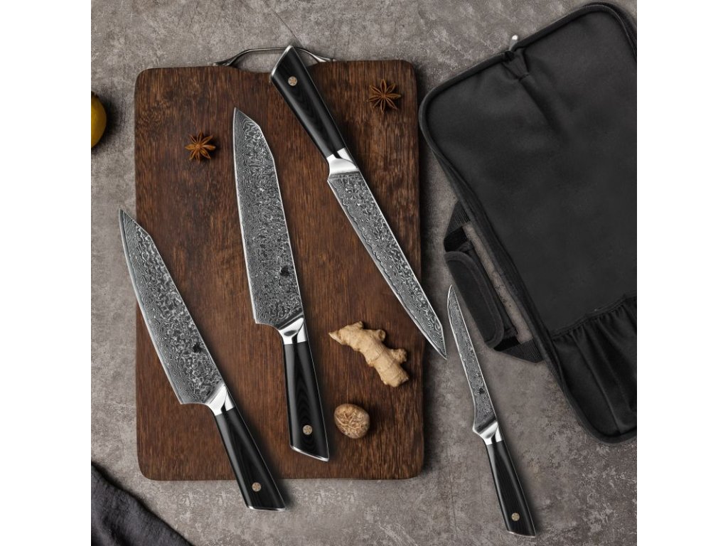 Ruční práce, 66 vrstev kvalitní damaškové oceli a (ne)skutečně ostrá čepel. Nože se tak od sebe liší jediným – tvarem a velikostí. Tak, aby vám v kuchyni do začátku při vaření nic nechybělo.