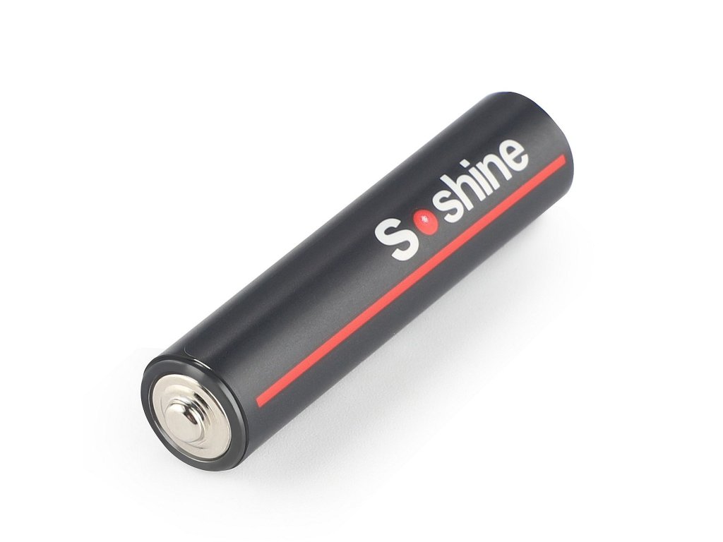 Nabíjecí baterie Soshine AAA USB 1100mWh slouží jako náhrada klasických tužkových AAA baterií. Životnost až 1200 cyklů. Uvnitř se jedná o Li-ion článek, který je vybaven regulační elektronikou, která v průběhu vybíjení drží pevné výstupní napětí 1,5 V. Akumulátor je tedy zvláště vhodný do přístrojů, které jsou citlivé na výši napětí a například s nabíjecími NiMH nepracují správně, nebo jen po krátkou dobu.