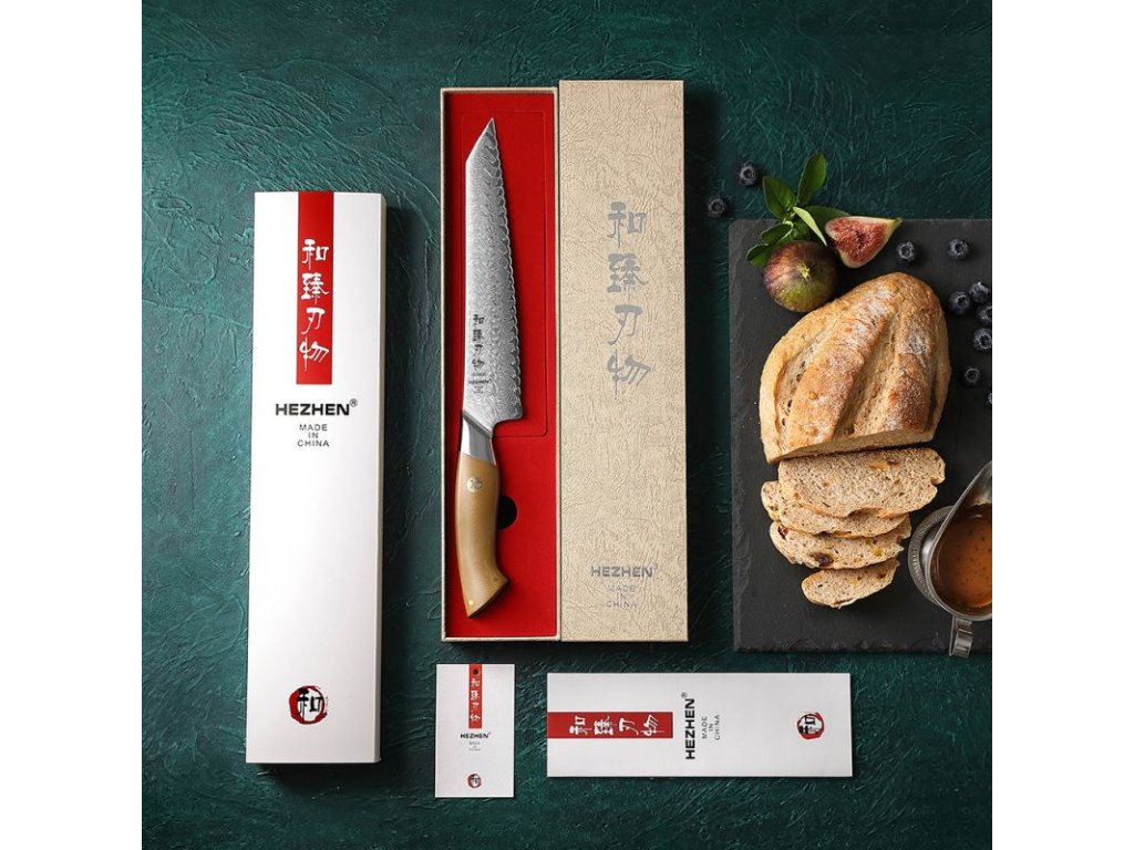 Profesionální nůž Hezhen® Bread B38L si zaslouží pořádný obal. Přijde vám tak v originální dárkové krabičce. Spolu s ním dostanete i certifikát potvrzující jeho pravost a kvalitu.