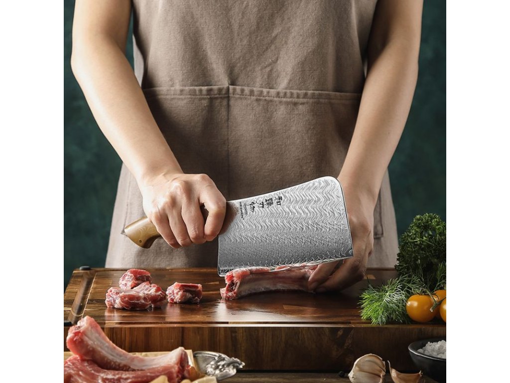 ... tak je to radost. O to větší, když se to dělá ručně. Dohlídne se tak na sebemenší detail, a vy tak si tak při sekání můžete být jistí. Rozměrná čepel a ostří z damaškové oceli se hodí na porcování větších kusů masa a sekání kostí. Projede jimi totiž jako po más(l)e.