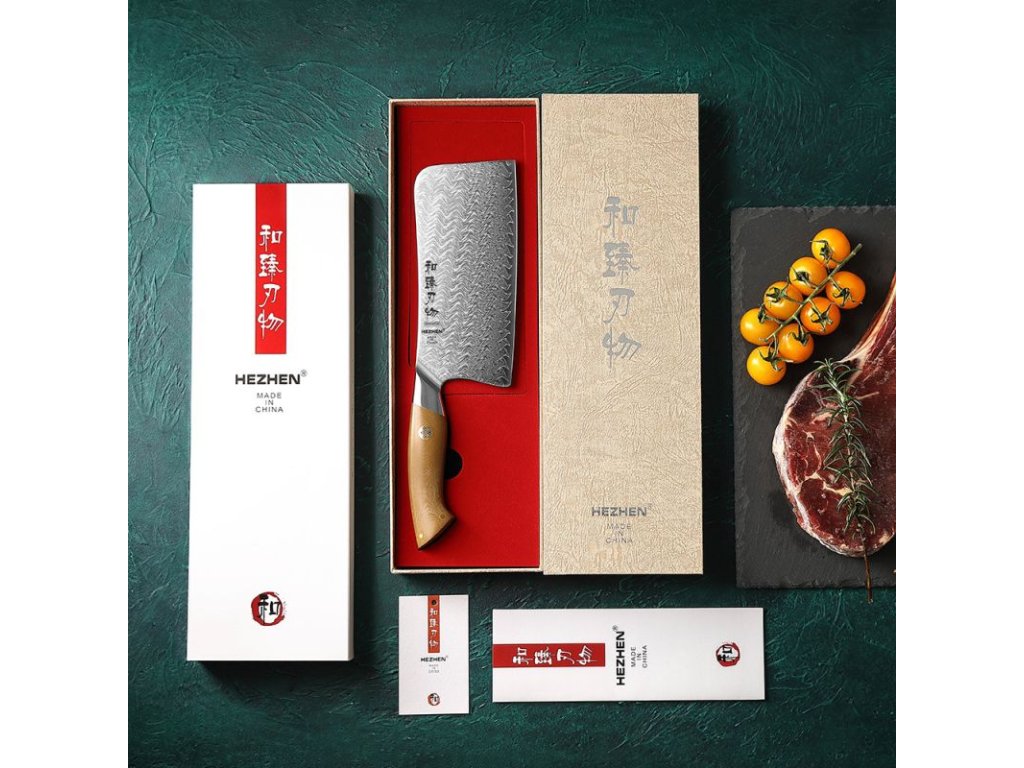 Profesionální nůž Hezhen® Chopper B38L si zaslouží pořádný obal. Přijde vám tak v originální dárkové krabičce. Spolu s ním dostanete i certifikát potvrzující jeho pravost a kvalitu.