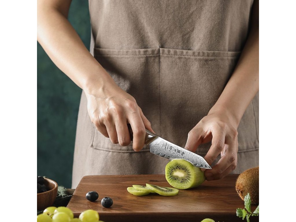 Dokonalá kombinace pro precizní práci. Díky zaoblené špičce se nůž nezapíchává. Budete mít tak stoprocentní kontrolu nad sebemenším řezem. Tomu pomáhá i jeho ručně broušené ostří.