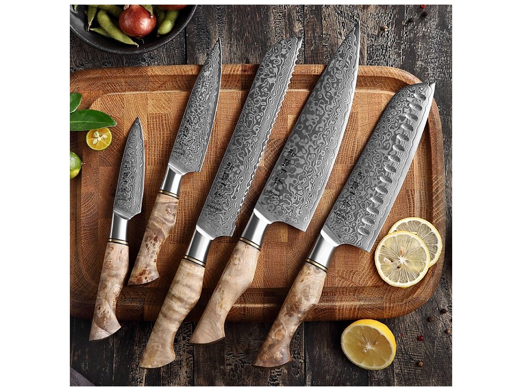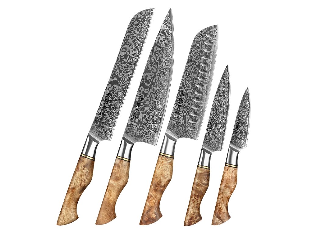 HEZHEN® kuchyňský set 5 nožů B30 z damaškové oceli v dárkovém balení