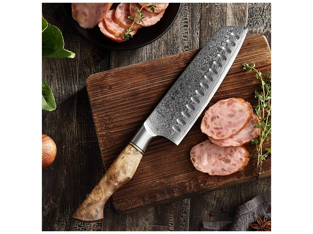 - Posledním nožem je pak Hezhen® Santoku B30. S jeho zaoblenou špičkou a robustní čepelí jednoduše nadrtíte, očistíte a nakrájíte cokoliv. S minimálním úsilí.