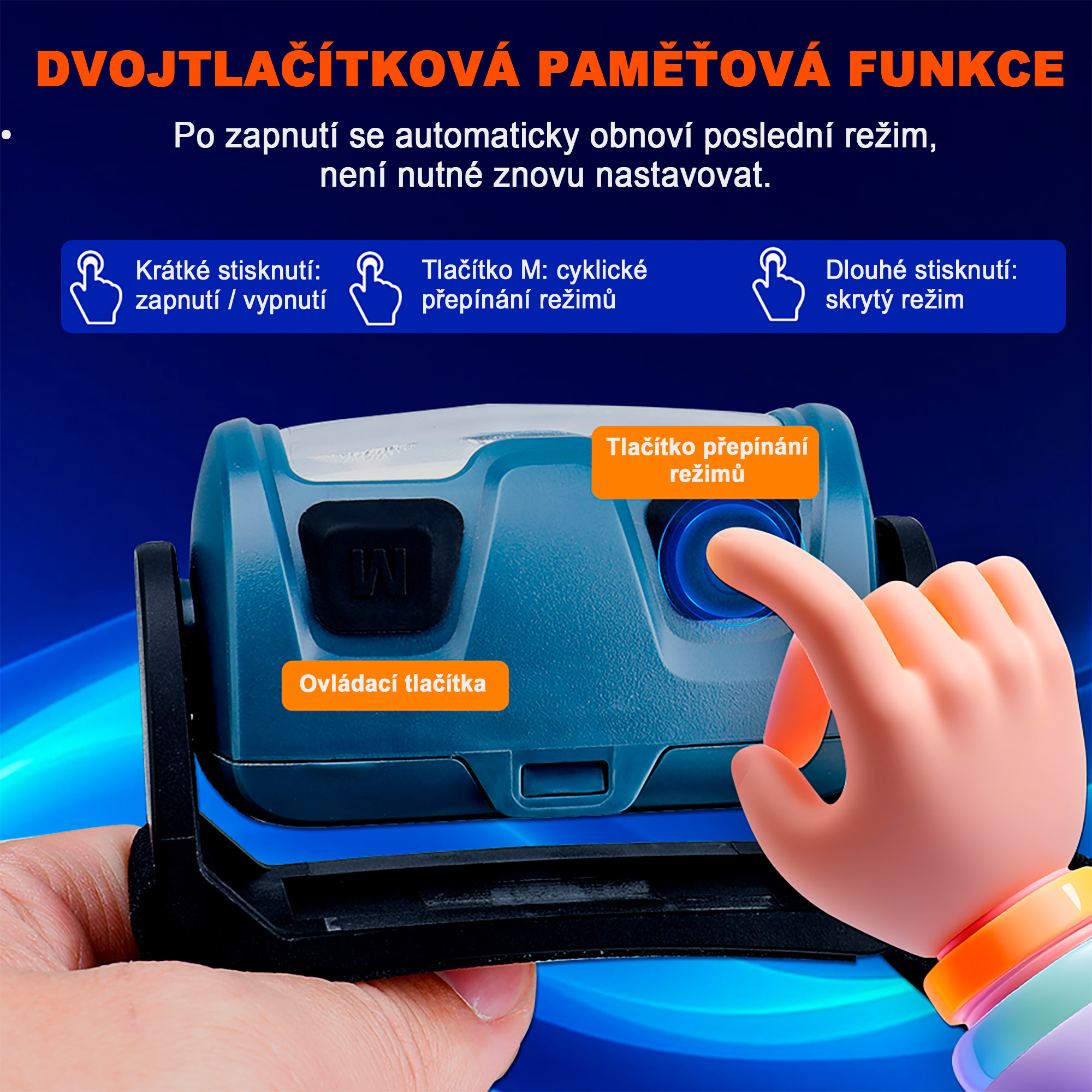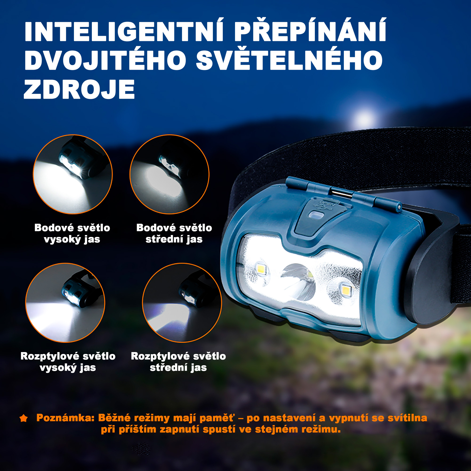 Čelovka nabízí celkem 4 hlavní režimy (vysoký, střední, úsporný, SOS), takže se přizpůsobí jakékoliv situaci.