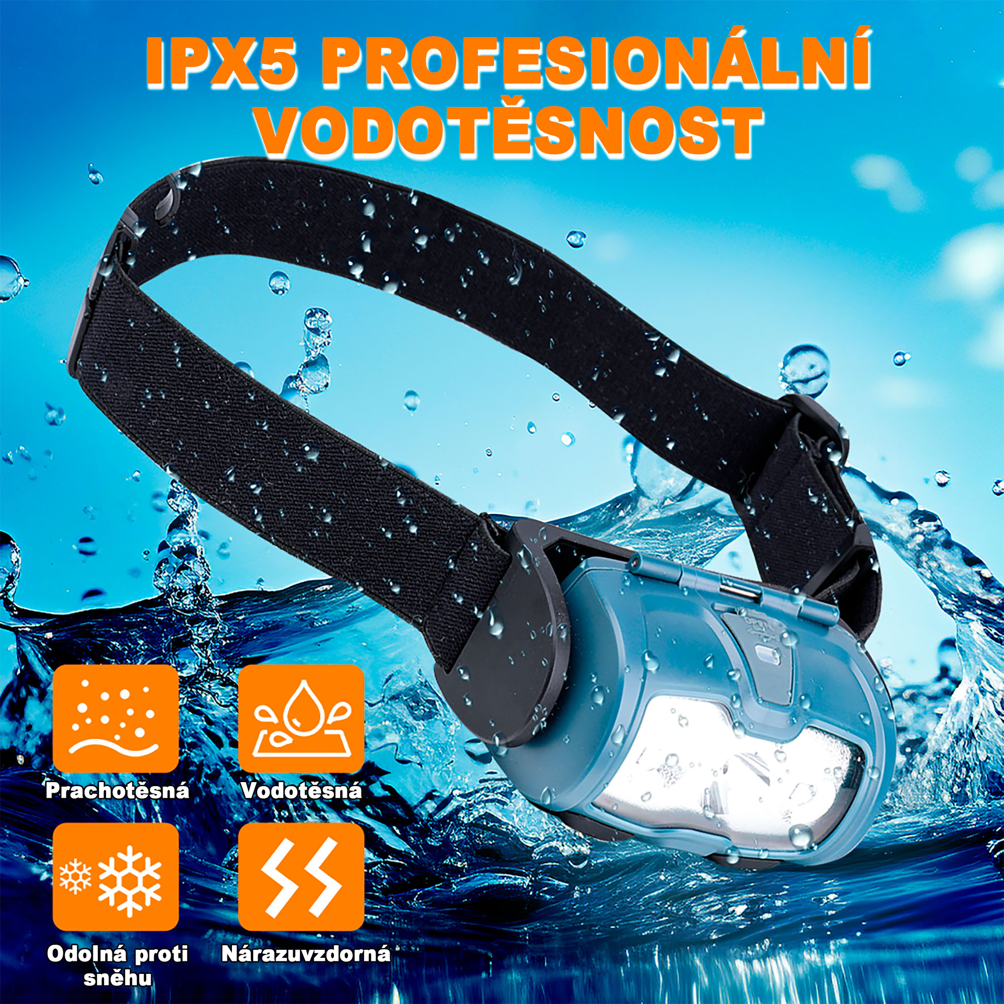 Díky vestavěné baterii s kapacitou 2 000mAh vydrží až 20 hodin svícení a přes moderní konektor USB-C se plně nabije přibližně za 3 hodiny. Voděodolnost IP65 zajišťuje spolehlivý provoz i v dešti a prašném prostředí.