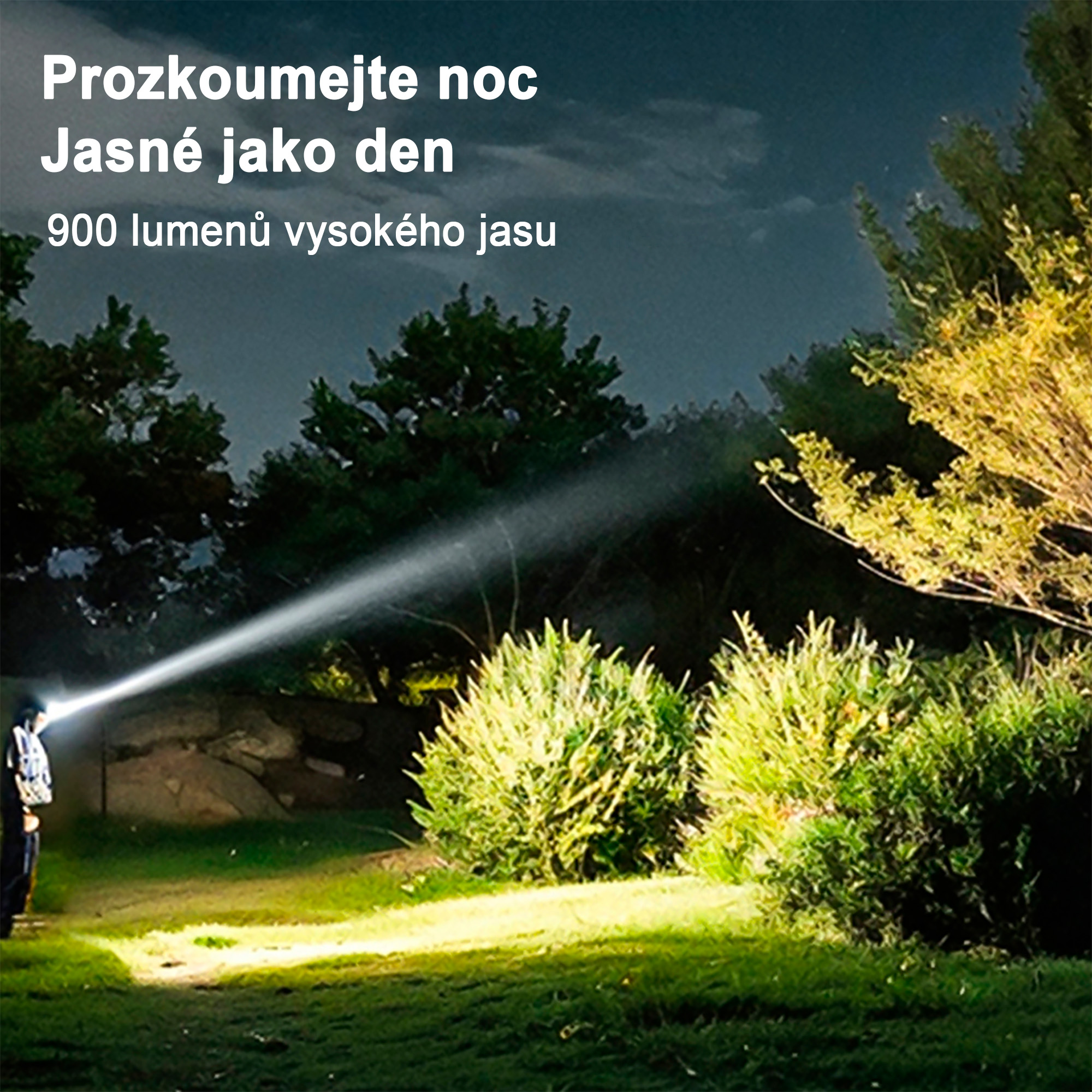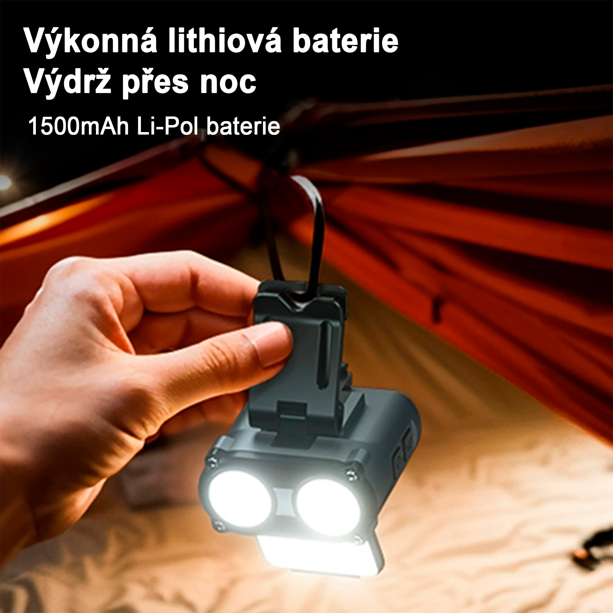 Výkon 5 100 lumenů · Krytí IP66 · Hmotnost 200 g · Více režimů + power bank funkce