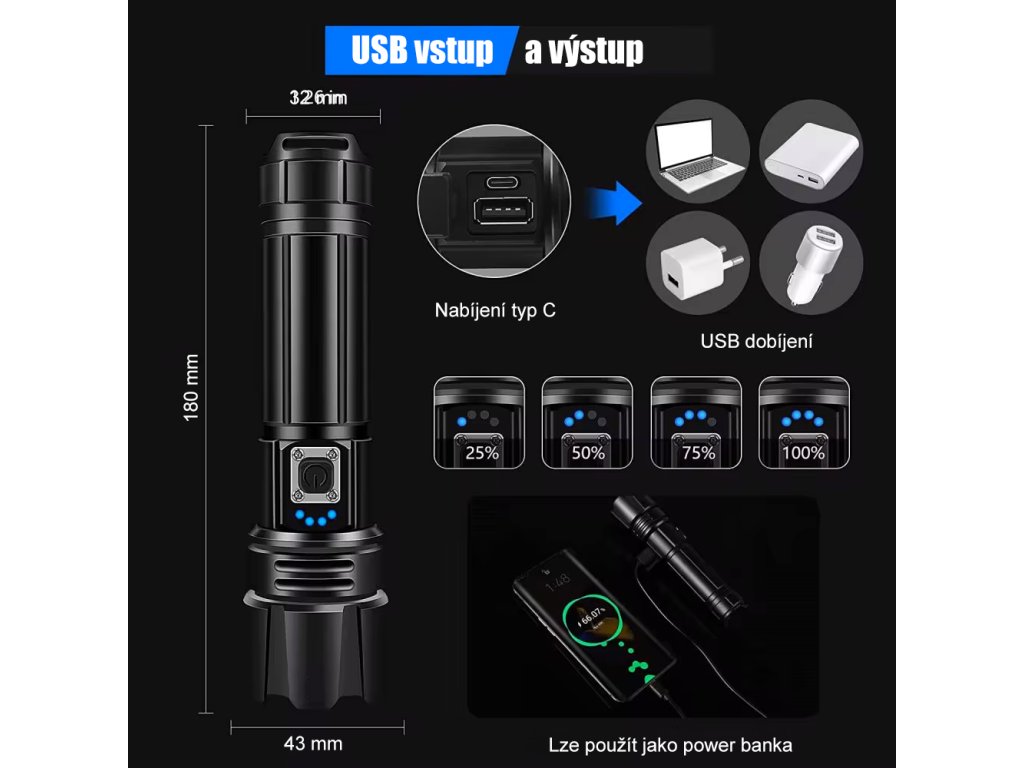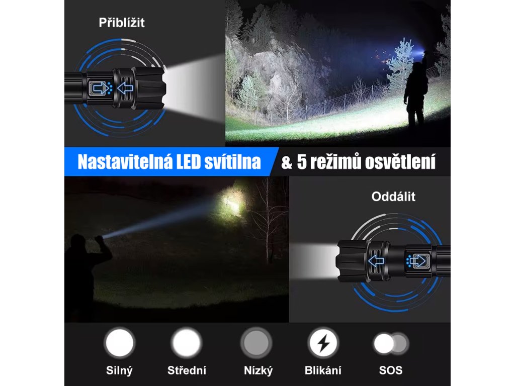 Hledáte-li výkonnou svítilnu s dlouhým dosahem a vysokou světelnou intenzitou, pak je tato nová laserová svítilna ideální volbou. LED čipem a možností zoomování můžete osvětlit až 1,5 km vzdálenost. Díky vodotěsné konstrukci a USB nabíjení je tato svítilna skvělým společníkem pro outdoorové aktivity.