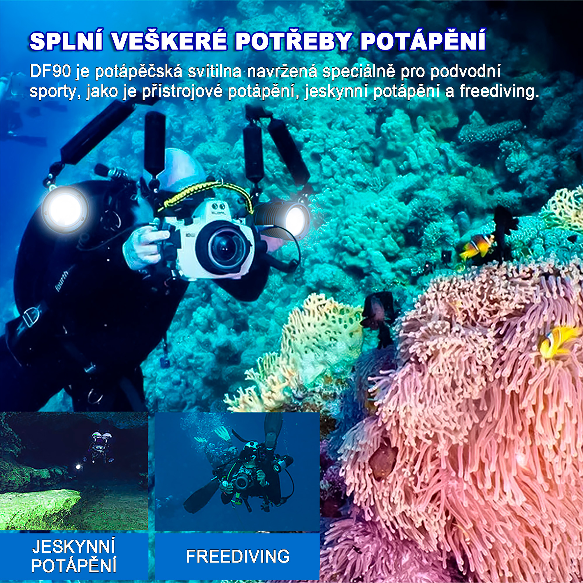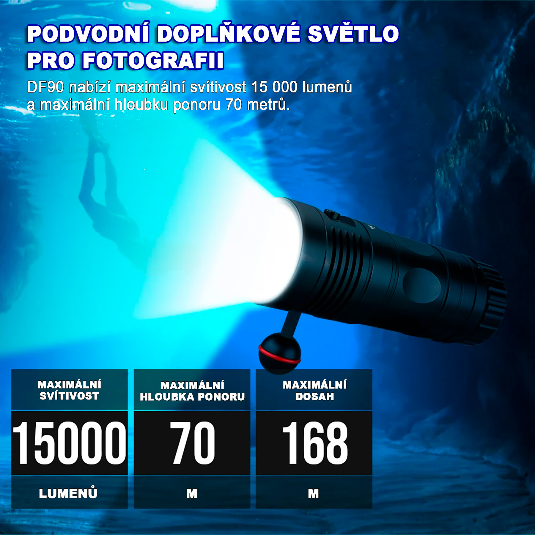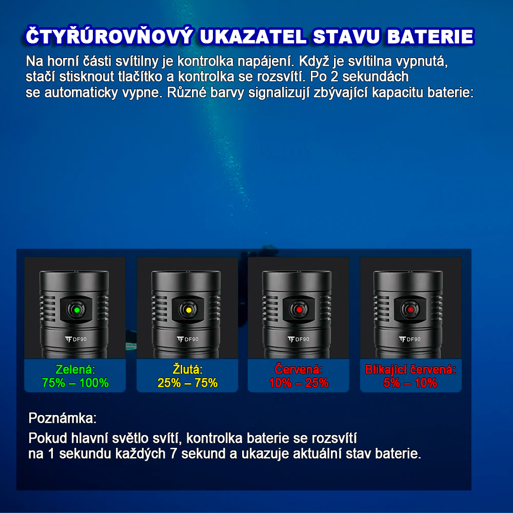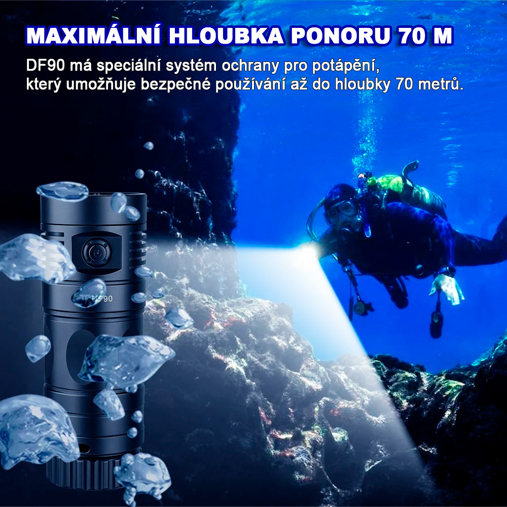 - Potápěčskou LED svítilnu TrustFire DF90
