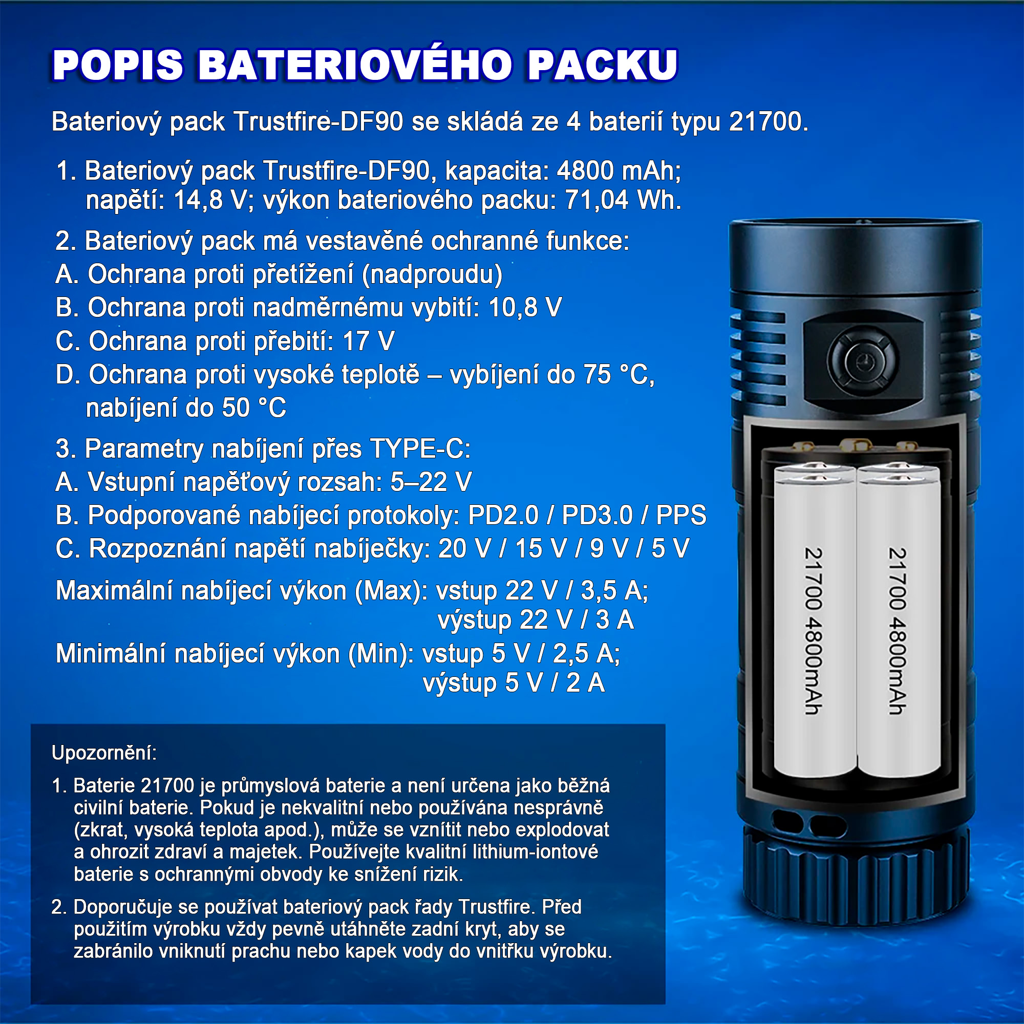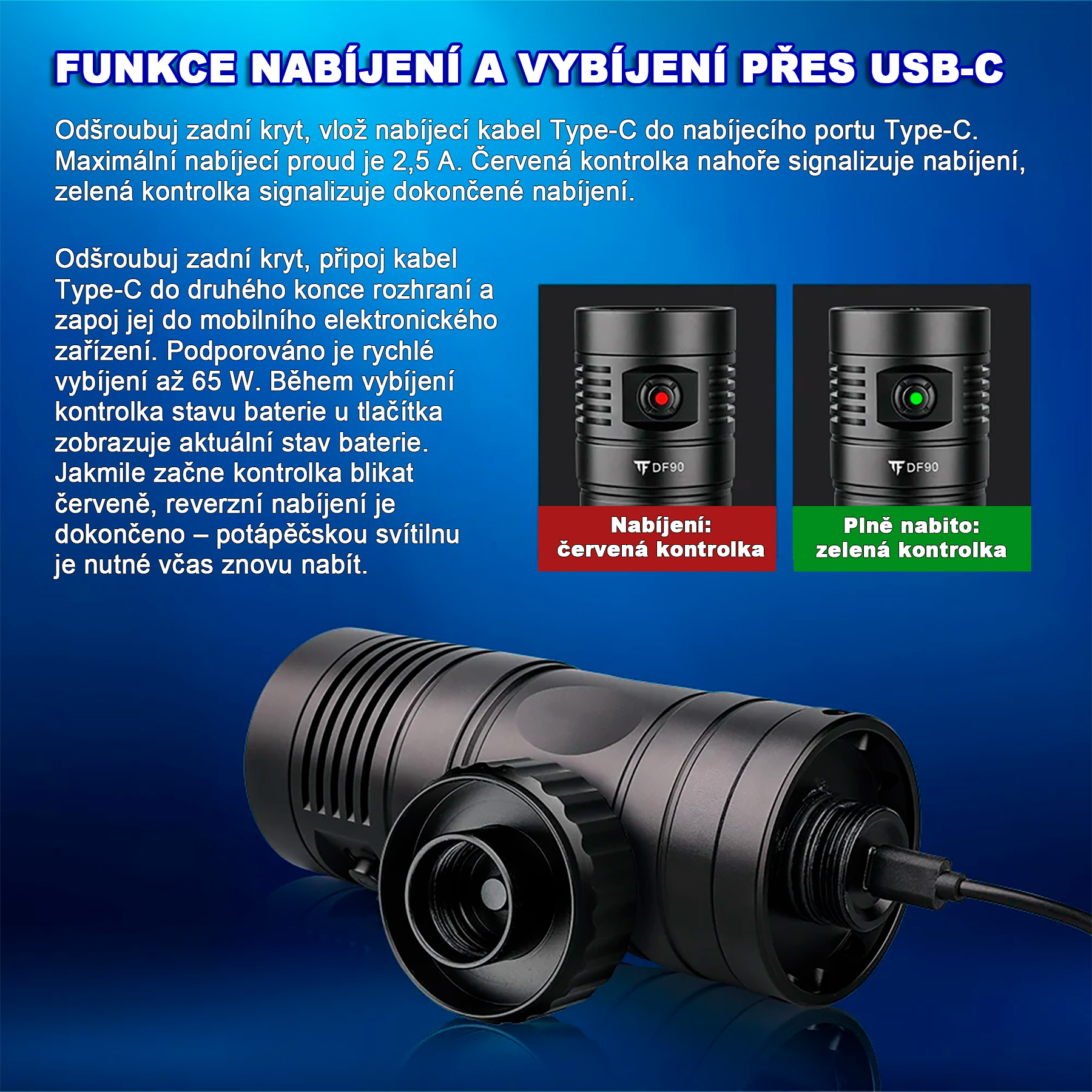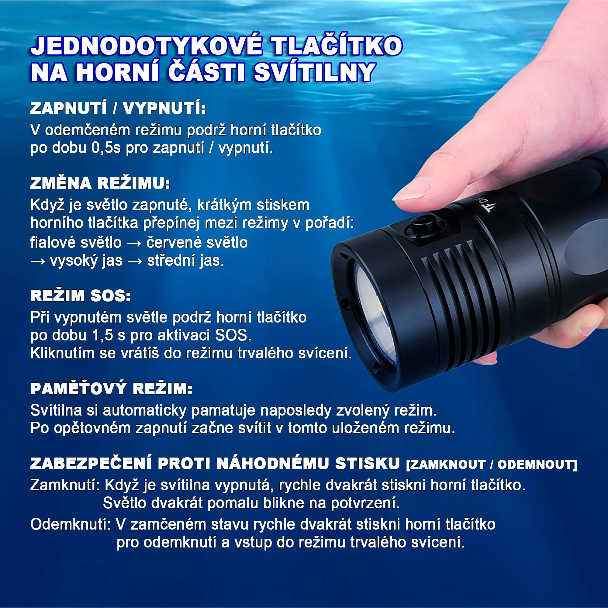 - Potápěčskou LED svítilnu TrustFire DF90