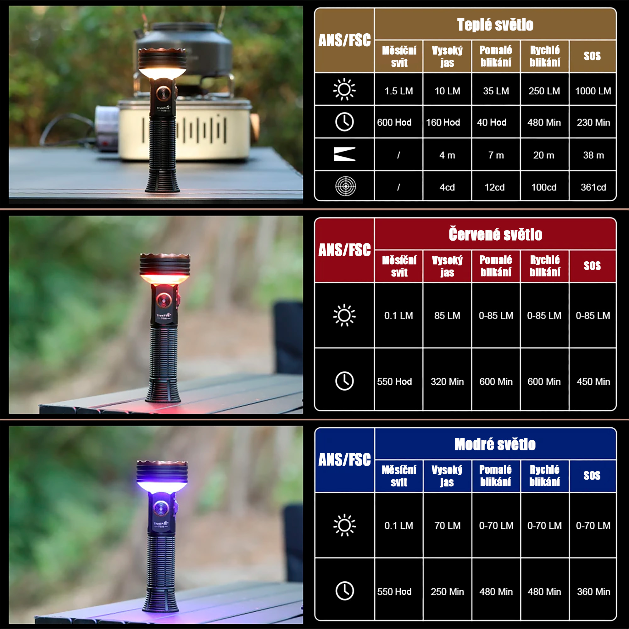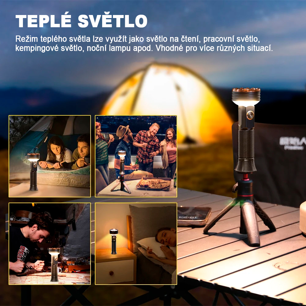 Tato univerzální svítilna je ideální volbou pro outdoorové aktivity, kempování, noční výpravy i nouzové situace. Spojuje vysoký výkon, všestrannost a možnost nabíjení vašich zařízení — spolehlivý společník, který vás nezklame, když je to nejvíc třeba.