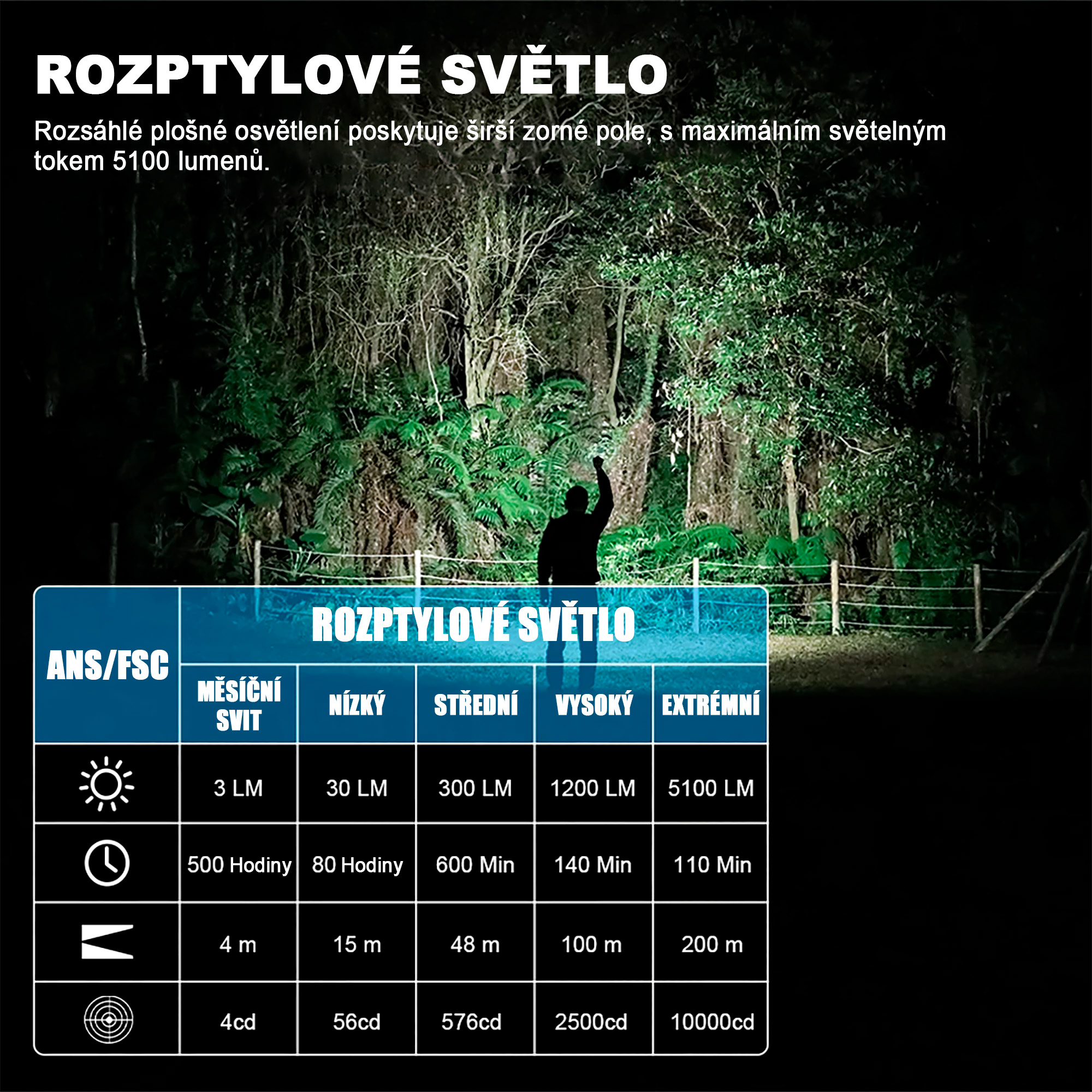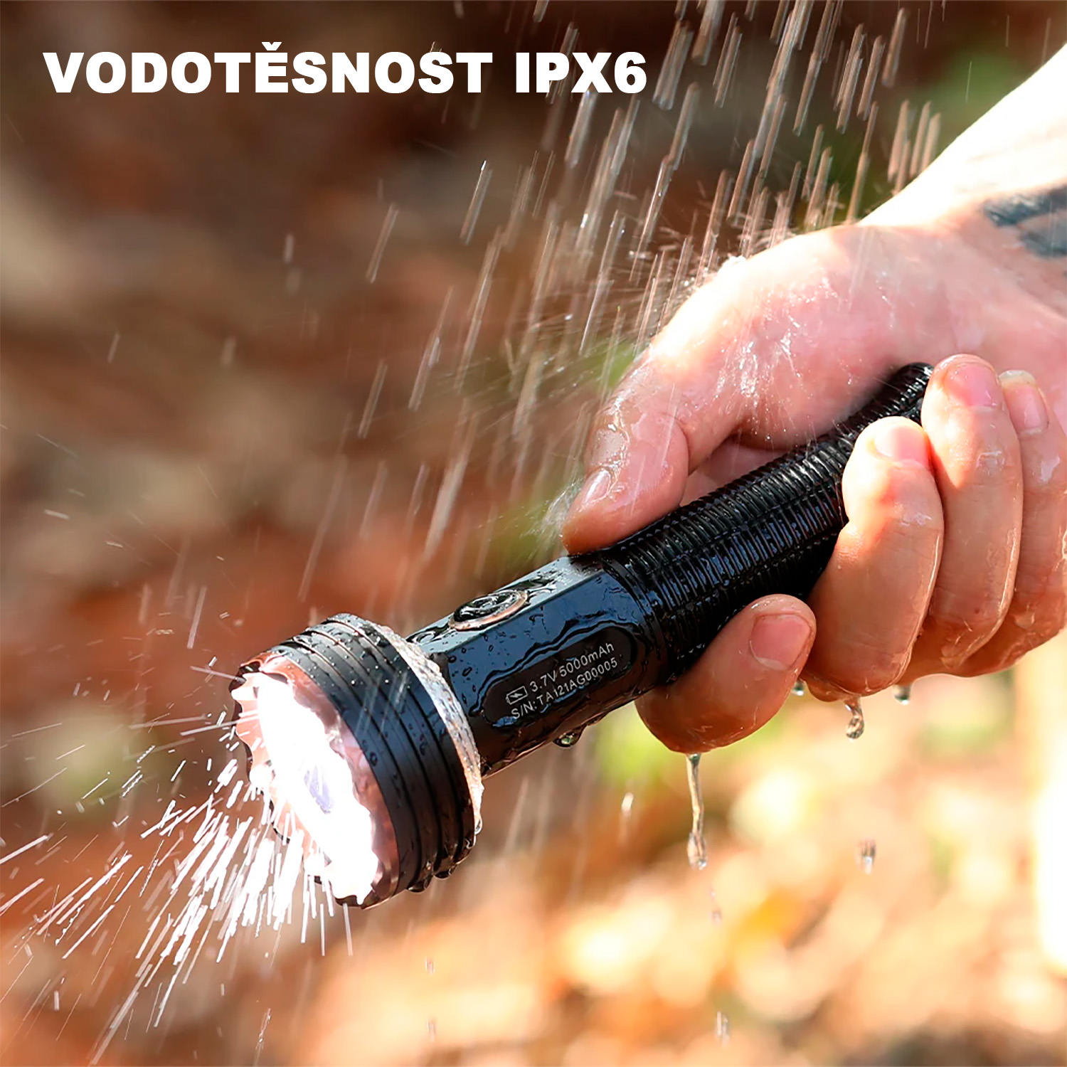 Včetně baterií a USB C kabelu · Výkon 4 800 lumen · Dosvit 1 600 m · Max. doba 112 h · Krytí IP68 ·...