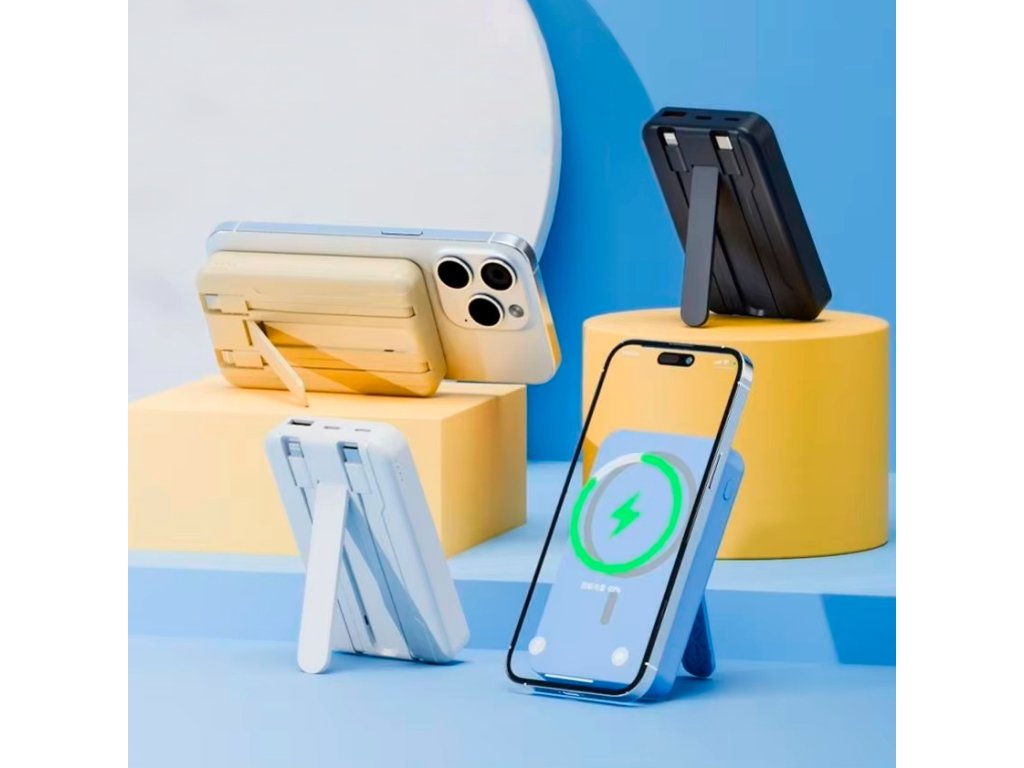 Kompaktní magnetická powerbanka s bezdrátovým nabíjením a stojánkem