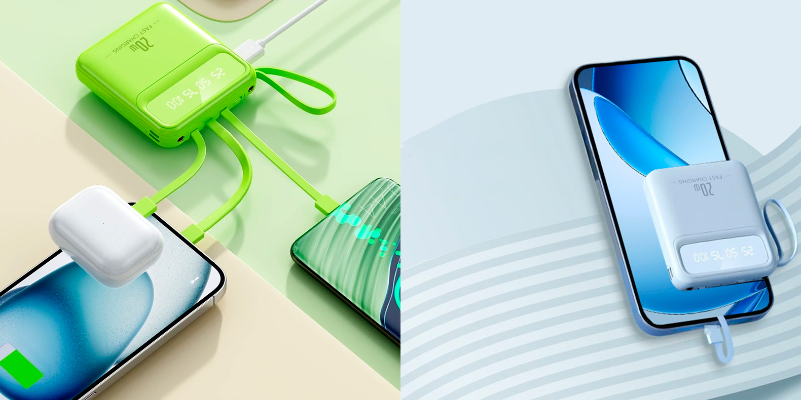 Tato kompaktní powerbanka s kapacitou 10 000 mAh nabízí praktické a okamžitě použitelné řešení nabíjení na cestách. Díky čtyřem vestavěným kabelům, rychlému 20W výstupu, LED displeji a nouzové svítilně je ideálním doplňkem pro každodenní použití.