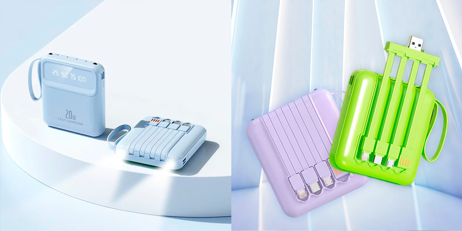 Praktická kapesní powerbanka se 4 kabely a rychlým nabíjením