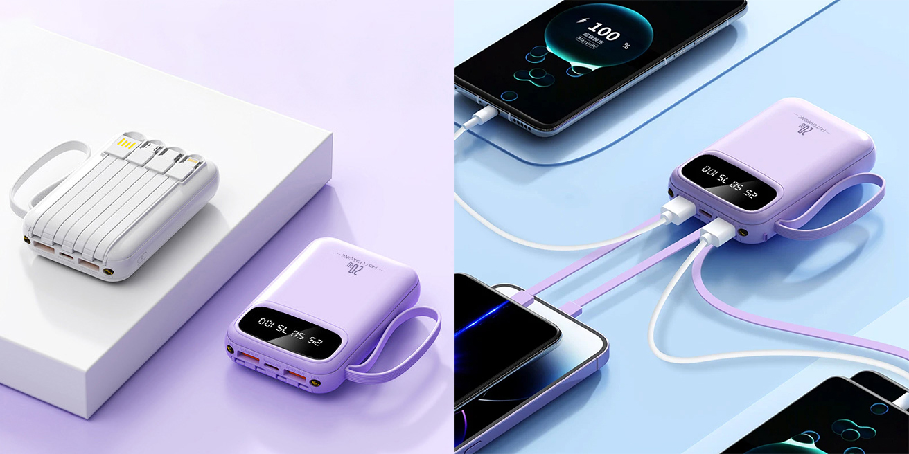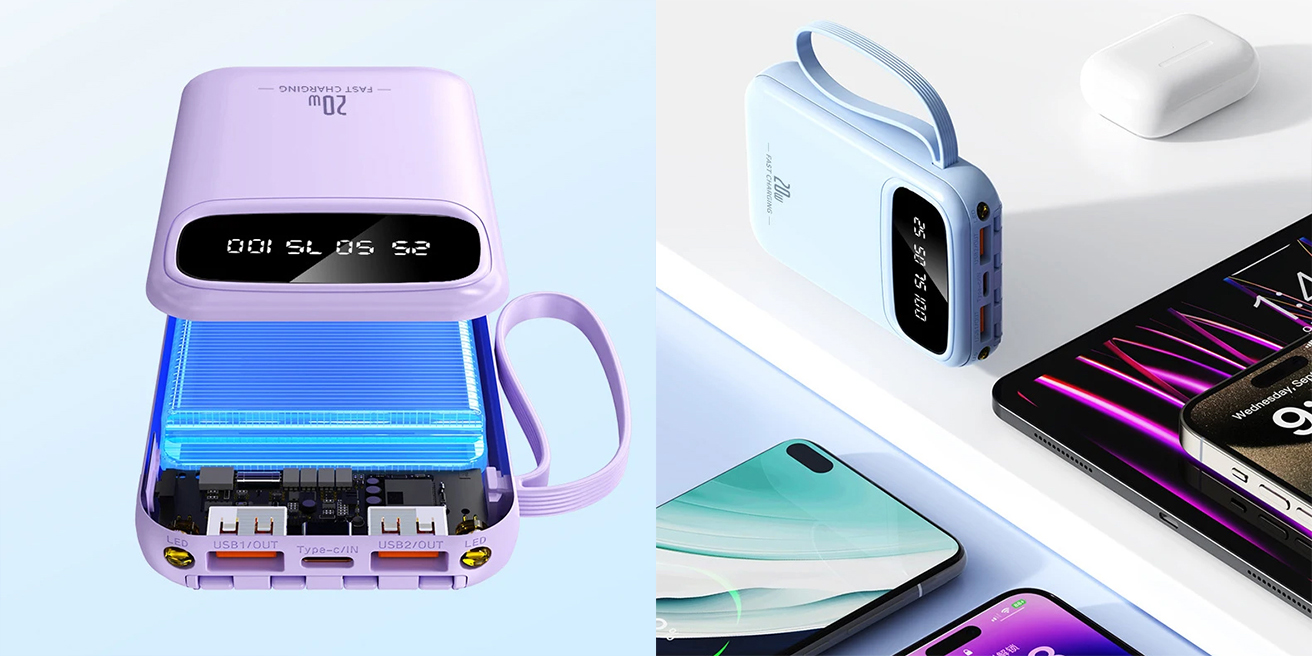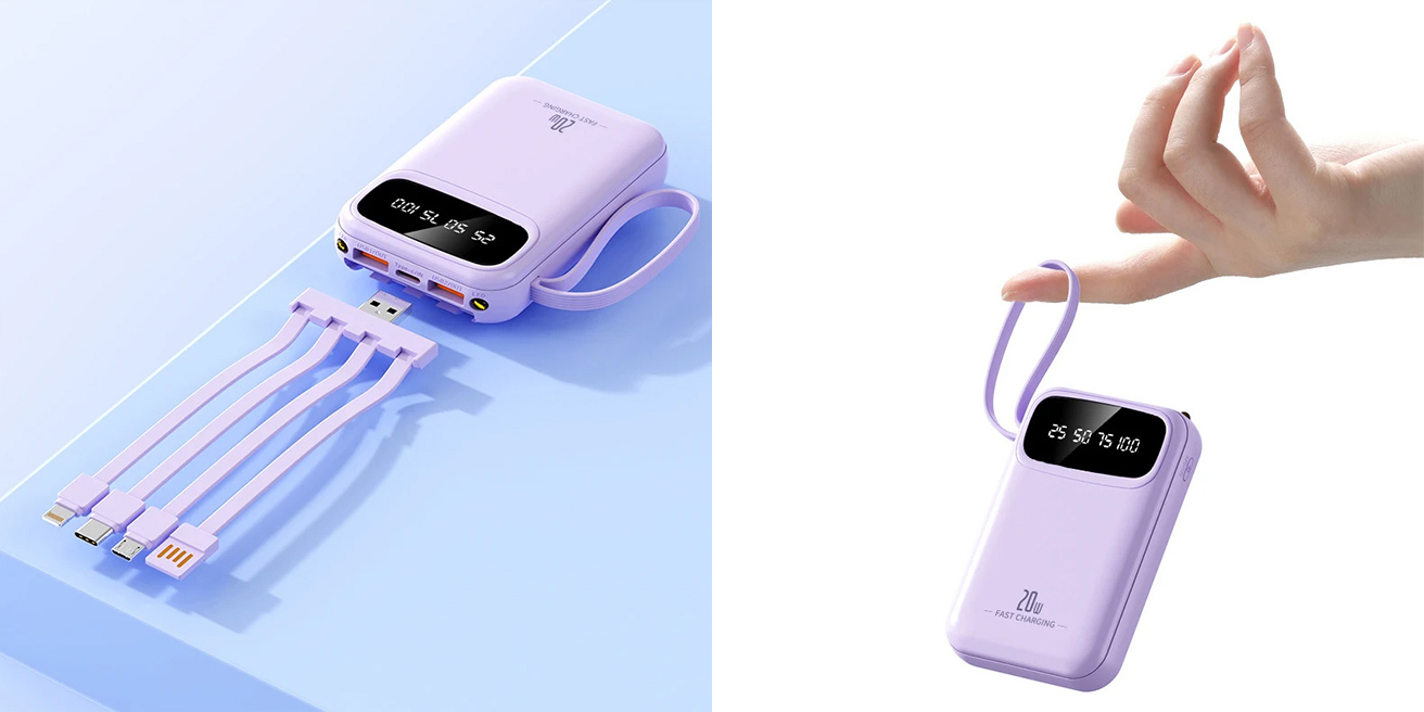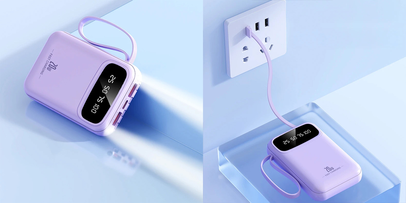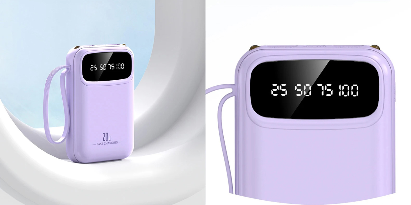 Praktická powerbanka s rychlým nabíjením, vestavěným kabelem a přehledným LED displejem