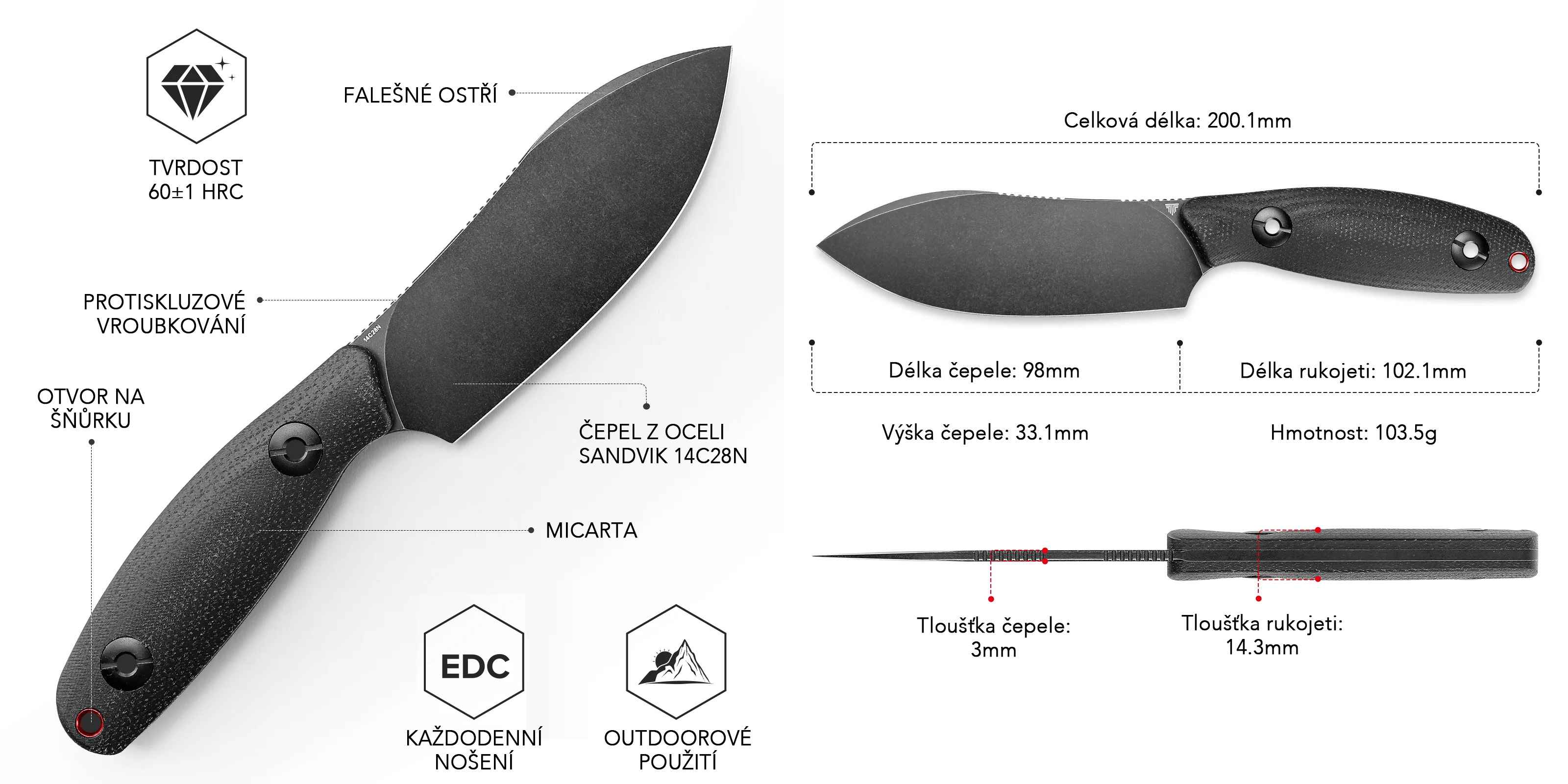 | Materiál čepele: | Švédská ocel 14C28N |