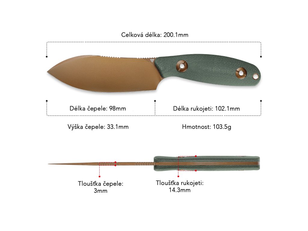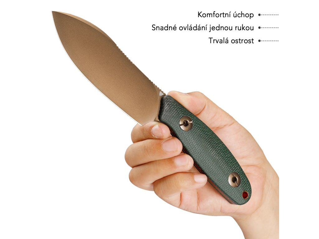 Už po prvním uchopení poznáte, že držíte v ruce kvalitu. Konstrukce full-tang zajišťuje maximální pevnost při práci a čepel z odolné oceli 14C28N zvládne každodenní zatížení bez kompromisů. Profil drop point poskytuje univerzální využití při outdoorových aktivitách i běžném použití. Ať už budete dělat cokoliv