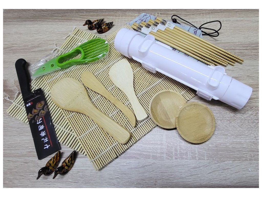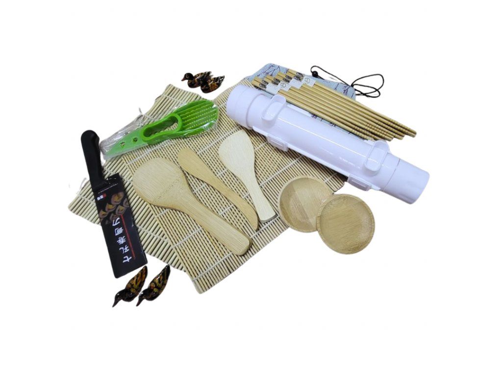 Chcete si vyrobit svoje sushi a nevíte, co k tomu použít? Proto je tu naše sada na jeho výrobu, která obsahuje všechny potřebné nástoje, které z vás udělají profesionální sushimana nebo sushiwomenku :-). Díky tomuto chytrému a elegantnímu setu si připravíte zdravé, chutné a oblíbené japonské jídlo kdykoli budete chtít.