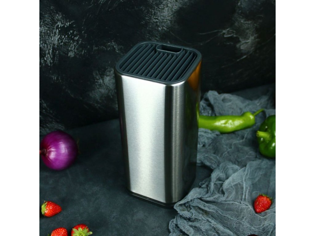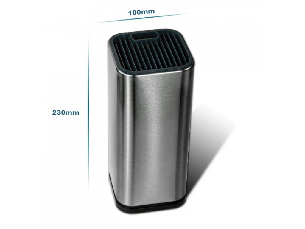 Velmi kvalitní nerezový stojan na nože, který je hezký nejen na pohled, ale zároveň ochrání vaše nože před poškozením. Ušetřete cenný prostor při přípravě jídla. Drážky oddělují ostří, aby se nože nedotýkaly. V bloku tak nehrozí poškození jejich čepele.