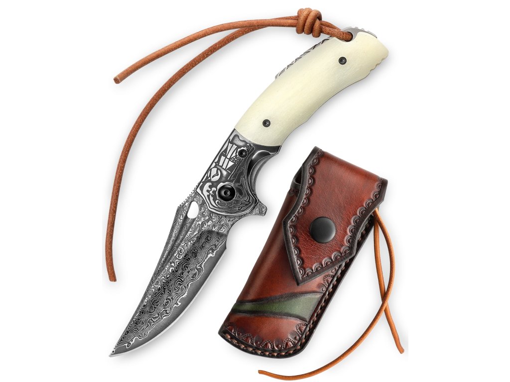 Čepel z 67vrstvé damaškové oceli vyniká nejen charakteristickou kresbou, ale také vysokou houževnatostí a schopností dlouhodobě držet ostří. Tvrdost 59–61 HRC zajišťuje spolehlivý výkon při každodenním používání.